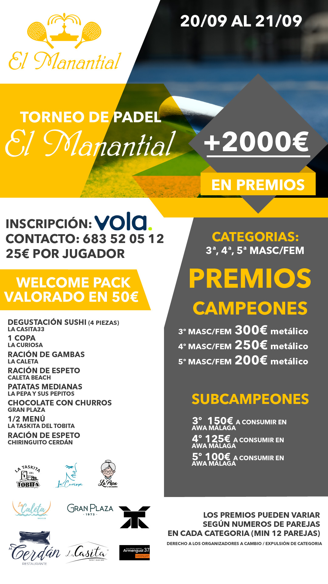 Consolidado como uno de los clubes más emblemáticos de Málaga, El Manantial ofrece un espacio ideal para los amantes del deporte y el buen ambiente. Contamos con 3 pistas de pádel, piscinas exteriores, una completa zona de entrenamiento funcional y un área al aire libre perfecta para compartir momentos con amigos y familiares antes o después de jugar. Ofrecemos clases personalizadas y grupales para todos los niveles, además de eventos, torneos y competiciones pensadas para disfrutar al máximo del pádel en un entorno inmejorable.