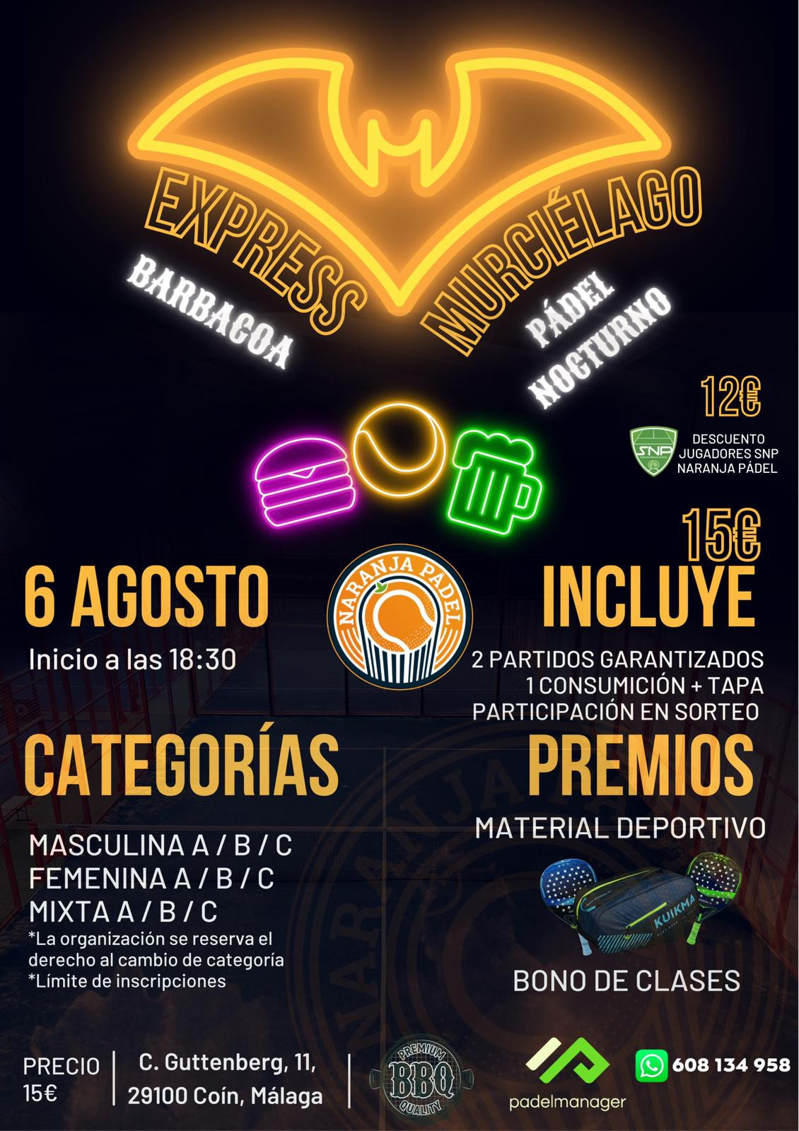 TORNEO EXPRESS NOCTURNO NARANJA PADEL