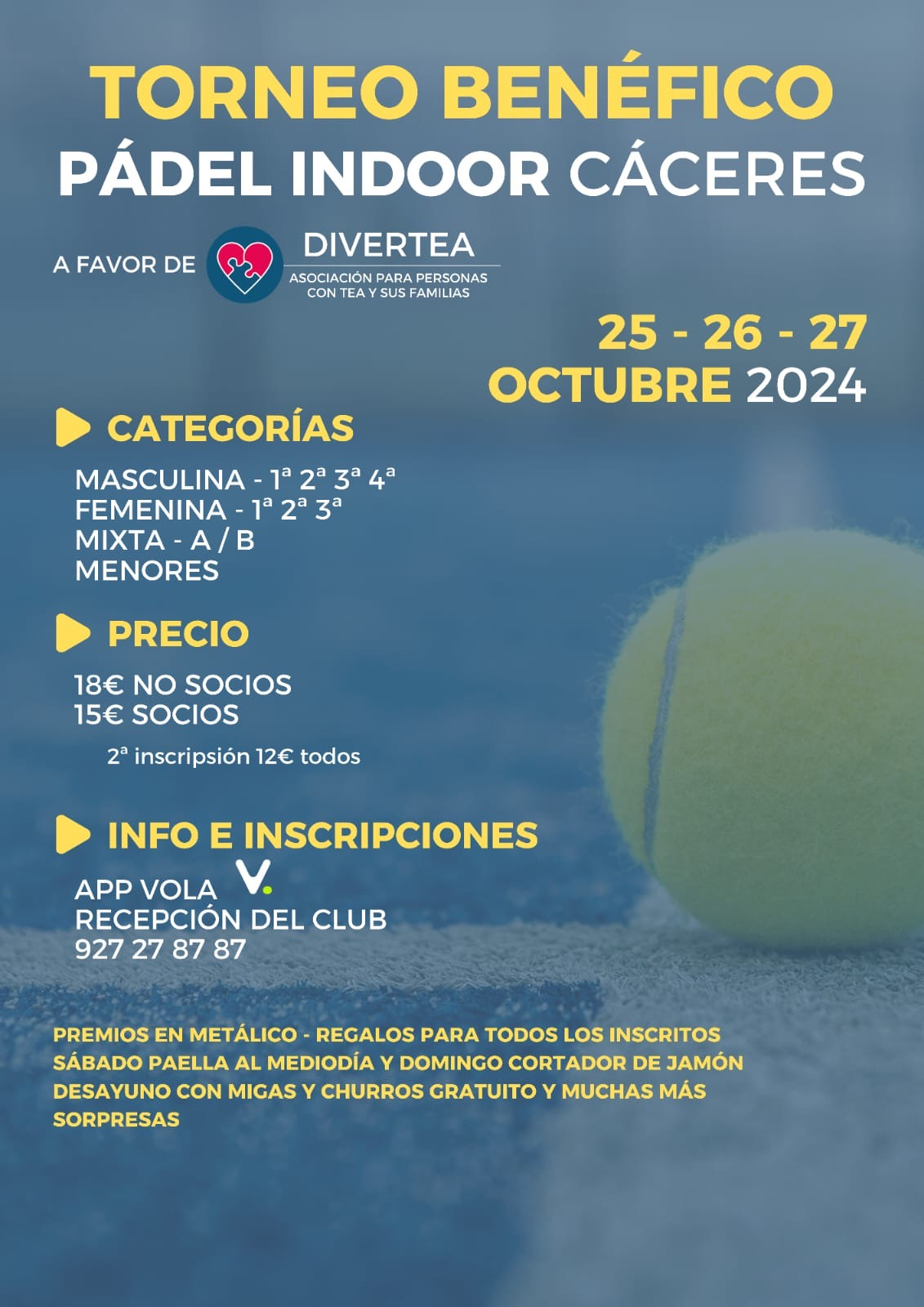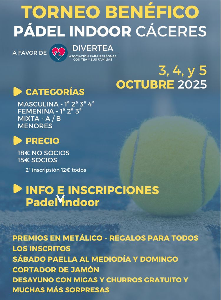 PÁDEL INDOOR CÁCERES, S.C. surge con el objetivo de prestar un servicio integral para la práctica del Pádel en Cáceres, ofertando en un recinto indoor y cubierto todo lo necesario para el desarrollo de esta actividad deportiva, alquilando las pistas de padel a los clientes y poniendo a su disposición todas los elementos auxiliares de nuestras instalaciones: aparcamiento, recepción de clientes, vestuarios completos, zona de calentamiento y estiramiento pre y post partido, zona de avituallamiento, y zona de adquisición de material deportivo. En Caceres disponemos de cuatro pistas de pádel cubiertas instaladas de forma independiente de forma que puedes disfrutar de tu deporte favorito sin distracciones ni molestias, además nuestras pistas están climatizadas para que el calor no sea un problema a la hora de disfrutar de un buen partido de padel. Todas nuestras instalaciones están adaptadas para personas con movilidad reducida de forma que puedan desarrollar la práctica del pádel de una forma cotidiana. Queremos destacar este aspecto ya que creemos que dar posibilidades de acceso a cualquier práctica deportiva supone un beneficio importante para todos y especialmente para este colectivo. Nuestra oferta de servicios incluye también actividades de formación deportiva, organizando clases de iniciación, mejora y perfeccionamiento, para todas las edades y ajustándonos a los requerimientos y niveles del cliente. Tus clases de padel ya no dependeran de las condiciones climatológicas. La oferta se completa con la organización de ligas y torneos de pádel de diferente naturaleza, que os permitirán disfrutar del pádel en Cáceres de la forma más divertida, compitiendo. Toda nuestra oferta de servicios es accesible a través de internet, donde Pádel Indoor Cáceres está presente con una web propia en la que se podrás realizar, desde el alquiler on line de pistas, hasta la inscripción a clases y torneos, o la participación en foros y noticias relacionadas con nuestra actividad deportiva. Además está interacción on line podrás efectuarla desde cualquier dispositivo con conexión a internet, PC, laptop, tablet y por supuesto smartphone. Visita nuestra pagina www.padelindoorcaceres.com